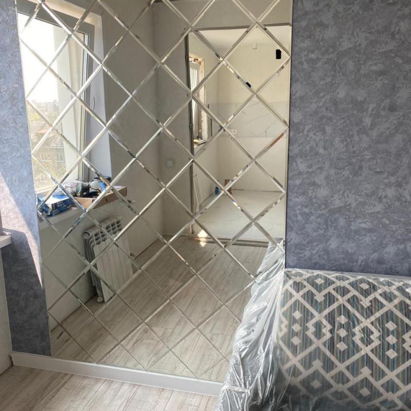 Использована зеркальная плитка вытянутый ромб размерами 20х34.